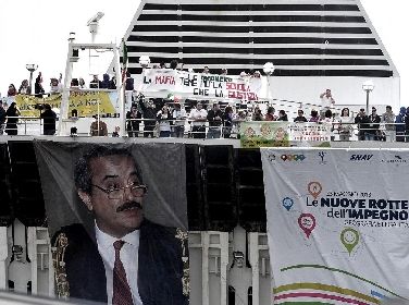 La nave della legalità con gli studenti provenienti da tutta Italia è arrivata al porto di Palermo per il 21/mo anniversario delle stragi di Capaci e di via D'Amelio, in cui morirono i magistrati antimafia Giovanni Falcone e Paolo Borsellino. Presenti anche il presidente del Senato, Pietro Grasso, e i ministri della Giustizia, Anna Maria Cancellieri, e delle Politiche Agricole, Nunzia Di Girolamo, che hanno partecipato alle celebrazioni nell'aula bunker dell'Ucciardone. Mentre il ministro dell'Istruzione, Maria Chiara Carrozza, ha visitato la mostra fotografica dell'Ansa a Corleone.