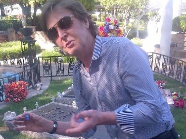 "Così potrai suonarla in paradiso", Paul McCartney depone il plettro di una chitarra della sua collezione personale sulla tomba di Elvis Presley, nel giardino della fantastica villa del "King del Rock and Roll", a Graceland. Il baronetto, ex "Fab Four", si trova a Memphis per una tappa del suo "Out There" tour, la prima volta in oltre vent'anni.