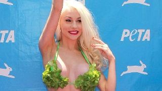 Courtney Stodden è diventata famosa dopo aver sposato, quando era ancora minorenne, l'attore Doug Hutchison, 30 anni più grande di lei, e soprattutto per il suo seno esplosivo, che non smette mai di mostrare come un trofeo. Adesso, con un bikini ricoperto di lattuga, posa sexy per la Peta. Lo aveva già gatto con i pomodori, perché la starlettina della tv dice di essere vegetariana e consiglia: "Diventate vegetariani, farete sesso molto meglio". Se lo dice lei...