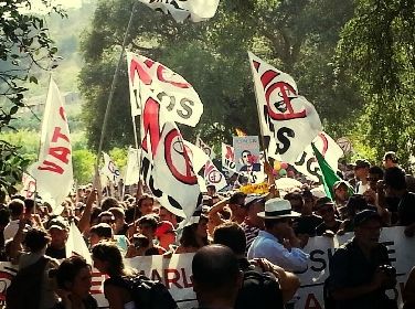 Un centinaio di manifestanti no-Muos è riuscito a sfondare la recinzione e ad entrare nella base militare americana di Niscemi, in Sicilia. In quei momenti concitati un militare della guardia di finanza è rimasto ferito alla gamba. Gli attivisti chiedono l'immediato stop alla realizzazione delle antenne satellitari.