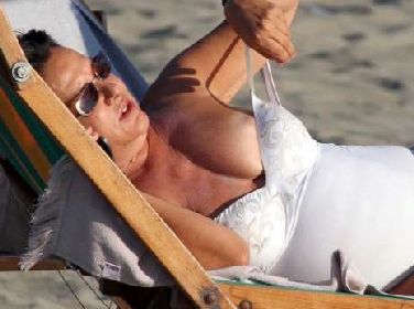 Un costume intero bianco con scollatura vertiginosa dal quale il generoso décolleté ha tutta l'aria di voler uscire. Così Patrizia Mirigliani, anima della Miren, che gestisce il concorso di bellezza Miss Italia, si gode un po' di relax con il marito a Fregene, dopo la bufera scoppiata proprio intorno alla kermesse, che l'ha letteralmente fatta uscire di se(n)no