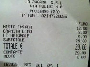Una coppia di turisti ha denunciato di aver dovuto pagare 9 euro per una bottiglia d'acqua minerale, in un bar di Positano, sulla Costiera Amalfitana. Lo scontrino, pubblicato su Facebook, elenca tutte le voci del conto: 12 euro per un misto d'insalata, 8 euro per una granita, 9 euro per una bottiglia di acqua minerale, per un totale di 29 euro. E sul trattamento del bar-pasticceria "La Zagara" scoppia la polemica. Ma Alessandra Russo, titolare dell'esercizio commerciale, si difende. "I due clienti si sono seduti sulla terrazza del locale, dove ogni sera c'è il piano bar". Russo aggiunge che a chiunque si sieda viene subito consegnato il menu con i prezzi.