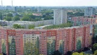 a Berlino. Sulle facciate di tre palazzi abitati da 3mila persone sono state dipinte immagini di alberi e uccelli per dare un tocco di verde al grigio della città.