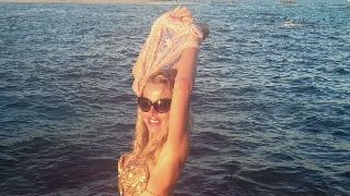 non ci tiene a rimanere relegata al solo ruolo di mogliettina. Su Instagram regala scatti mozzafiato improvvisando uno spogliarello che scopre le sue forme burrose. Su uno yacht alza le braccia e si toglie il vestitino aderente color carne rimanendo con un bikini succinto che lascia poco all'immaginazione.