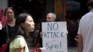 "Barack Obama, giù le mani dala Siria": le urla di un centinaio di manifestanti hanno fatto dasfondo nel giardino delle Rose della Casa Bianca mentre il presidente degli Stati Uniti aggiornava dal podio il Paese sulla crisi provocata dai gas di Damasco. I manifestanti si erano radunati fuori dai cancelli di 1600 Pennsylvania Avenue per proclamare con slogan e cartellil'opposizione all'azione militare con cui l'amministrazione americana intenderebbe punire Damasco. La protesta di Washington è stata la più clamorosa tra le tante organizzate negli Stati Uniti e altrove.