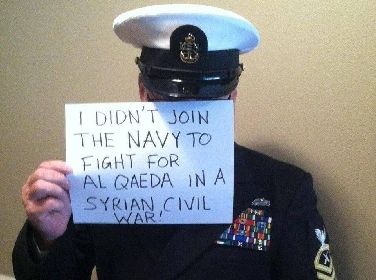 Mentre l'America attende il via libera del Congresso per l'attacco alla Siria, sui social network serpeggia il dissenso di alcuni militari. Foto di diversi uomini in uniforme (marinai, marine e soldati) sono state postate soprattutto su Reddit: il messaggio, scritto su fogli che nascondono il volto dei militari, è il rifiuto di combattere nella guerra civile siriana "accanto ad Al Qaeda".