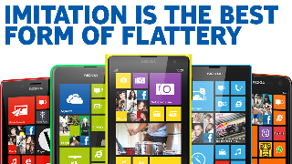 Nemmeno il tempo di presentare il nuovo iPhone 5C, la versione economica e variopinta del celeberrimo "melafonino", ed ecco la risposta dei rivali: sul profilo Facebook ufficiale della Nokia è comparso un commento sibillino, "L'imitazione è la miglior forma di lusinga", corredato da un ironico "Grazie Apple ;)". Della serie, fare buon viso a cattivo gioco: all'azienda finlandese non è andata giù la svolta a colori di Apple, idea "presa in prestito" dal Nokia Lumia