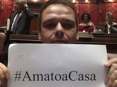 Non si è ancora insediato nel suo ruolo di giudice costituzionale, ma i parlamentari M5S già invocano che vada "a casa" e portano la protesta fin dentro l'Aula. A scagliarsi contro Giuliano Amato è il deputato 5 Stelle Daniele Del Grosso, che pubblica su Facebook una foto scattata nell'emiciclo della Camera, in cui esibisce un foglio con la scritta a caratteri cubitali: "Amato a casa". Poco dopo lo stesso Del Grosso protesta: "Hanno appena censurato il nostro intervento su Amato alla Camera!".