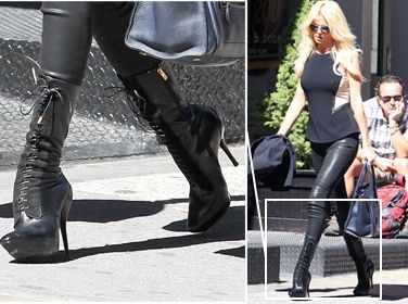 Abbandonate le calde spiagge di Miami la ritroviamo a passeggiare per le vie di Soho, il quartiere dello shopping di New York. Victoria Silvstedt si concede una giornata in relax con un look a dir poco aggressivo: leggings neri di pelle, scarpe fetish dal tacco vertiginoso e un toppino che lascia intravedere i capezzoli. Niente reggiseno per la giunonica svedese e i fotografi ringraziano.