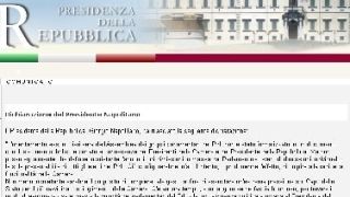Il presidente della Repubblica, Giorgio Napolitano, ha rilasciato la seguente dichiarazione a commento della minaccia di dimissioni da parte dei parlamentari Pdl: "L'orientamento assunto ieri sera dall'Assemblea dei gruppi parlamentari del Pdl non è stato formalizzato in un documento conclusivo reso pubblico e portato a conoscenza dei Presidenti delle Camere e del Presidente della Repubblica. Ma non posso egualmente che definire inquietante l'annuncio di dimissioni in massa dal Parlamento - ovvero di dimissioni individuali, le sole presentabili - di tutti gli eletti nel Pdl. Ciò configurerebbe infatti l'intento, o produrrebbe l'effetto, di colpire alla radice la funzionalità delle Camere. Non meno inquietante sarebbe il proposito di compiere tale gesto al fine di esercitare un'estrema pressione sul Capo dello Stato per il più ravvicinato scioglimento delle Camere. C'è ancora tempo, e mi auguro se ne faccia buon uso, per trovare il modo di esprimere - se è questa la volontà dei parlamentari del Pdl - la loro vicinanza politica e umana al Presidente del PdL, senza mettere in causa il pieno svolgimento delle funzioni dei due rami del Parlamento. Non occorre poi neppure rilevare la gravità e assurdità dell'evocare un "colpo di Stato" o una "operazione eversiva" in atto contro il leader del Pdl. L'applicazione di una sentenza di condanna definitiva, inflitta secondo le norme del nostro ordinamento giuridico per fatti specifici di violazione della legge, è dato costitutivo di qualsiasi Stato di diritto in Europa, così come lo è la non interferenza del Capo dello Stato o del Primo Ministro in decisioni indipendenti dell'autorità giudiziaria". 26 settembre 2013