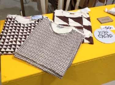 La tee ecologica diventa golosa grazie agli “inchiostri” commestibili di Altriluoghi. Il brand ha presentato la nuova collezione in occasione della fiera della moda “etica” “So critical so fashion”. Dopo le stampe realizzate con spinaci e carote, sono arrivate anche quelle per gli amanti del cioccolato. Queste speciali tinte mantengono l'odore della materia prima utilizzata.