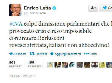 "Gli italiani non abbocchino a Berlusconi sull'Iva". Lo scrive Enrico Letta su Twitter.
