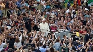Bagno di folla per il Pontefice che, al termine della messa per la Giornata dei Catechisti e dell'Angelus, ha attraversato Piazza San Pietro, gremita di quasi centomila fedeli, a bordo della "campagnola" scoperta. Il Papa, acclamato con grande entusiasmo dalla folla, è anche uscito dai confini vaticani percorrendo Via della Conciliazione tra due ali di fedelifestanti. Durante il tragitto, una folata di vento ha fatto volare via lo "zucchetto" dal capodi papa Francesco.