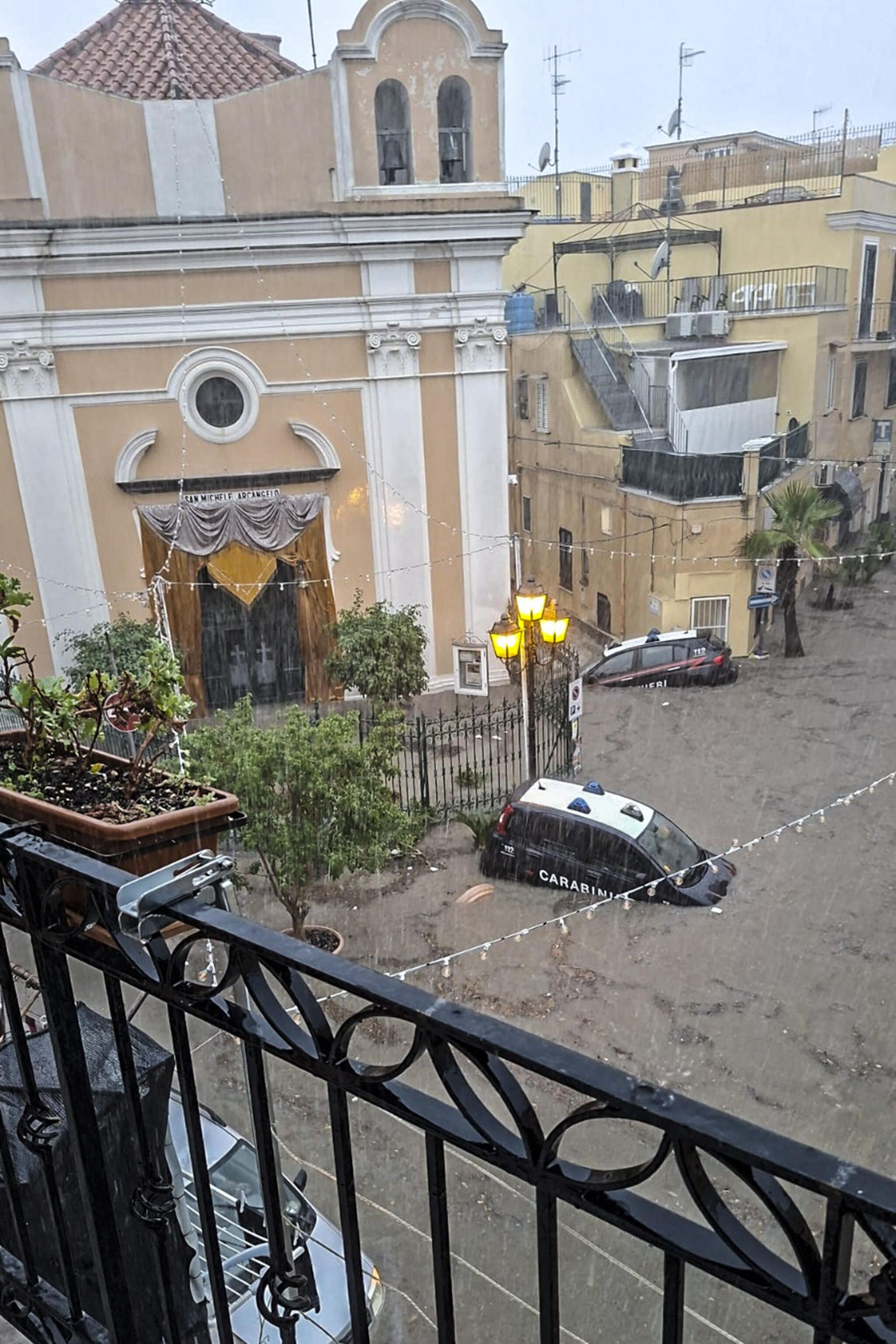 Nubifragio ad Ischia, strade allagate e auto sommerse
