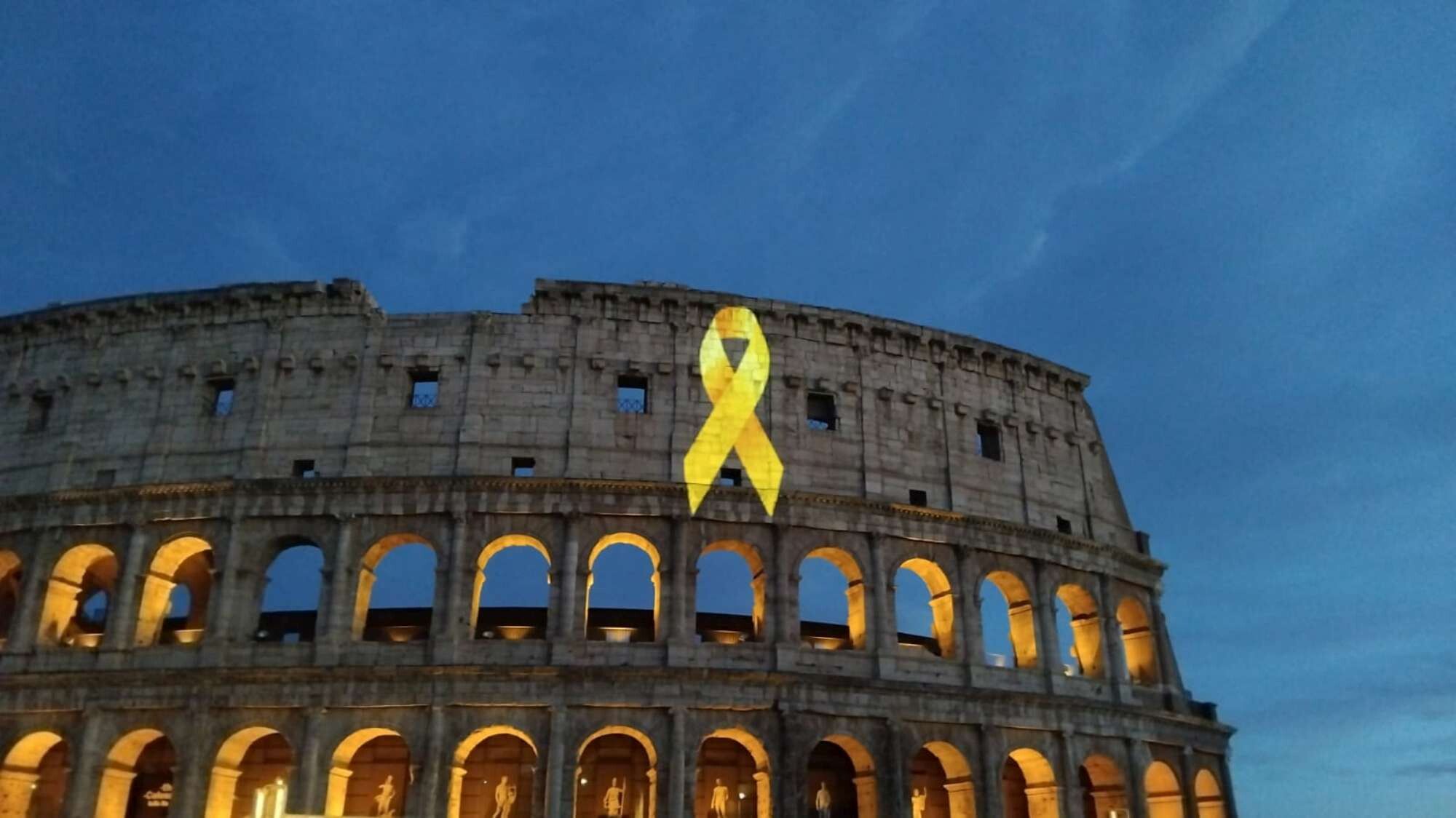Un grande nastro dorato ha illuminato sabato sera il Colosseo, trasformandolo in un simbolo di speranza e vicinanza per tutti i bambini malati di cancro e per le loro famiglie. L'iniziativa di Peter Pan, l'organizzazione di volontariato che accoglie i bambini malati di tumore in cura negli ospedali romani e le loro famiglie. Un modo per celebrare il Settembre d'Oro, mese dedicato alla sensibilizzazione sui problemi e i diritti dei bambini e degli adolescenti con tumori e sull'impatto della malattia sulle famiglie. L'iniziativa fa parte della campagna di sensibilizzazione "Accendi d'oro, accendi la speranza", lanciata ogni anno dalla Federazione Italiana Associazioni Genitori e Guariti Oncoematologia Pediatrica, di cui Peter Pan è membro.