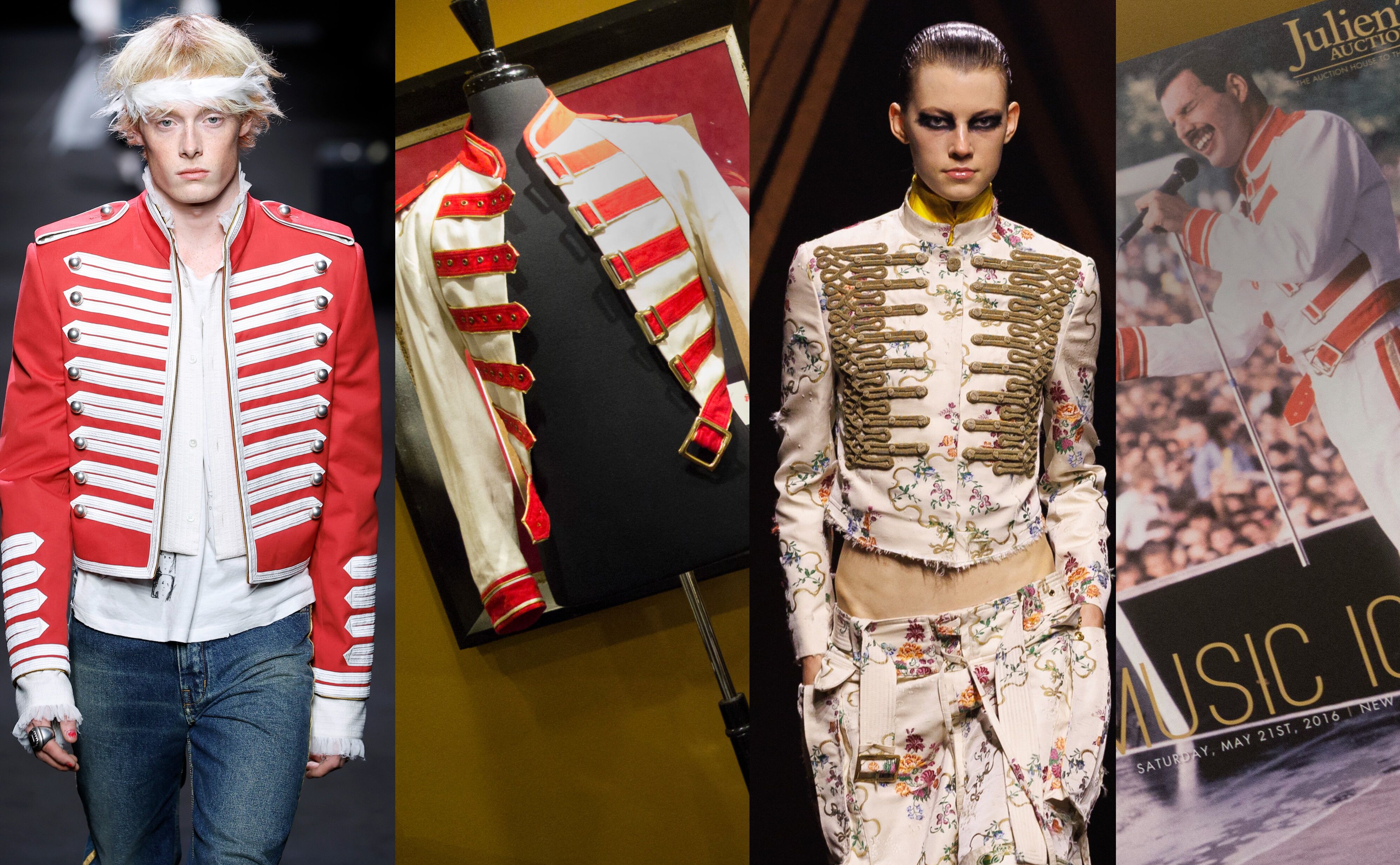 © Catwalk Pictures/Afp/Catwalk Pictures/Afp|La Napoleon Jacket: due modelli proposti in passerella da Ann Demeulemeester SS26 e Alexander McQueen SS26 tra la "Rock Soldier" di Freddie Mercury