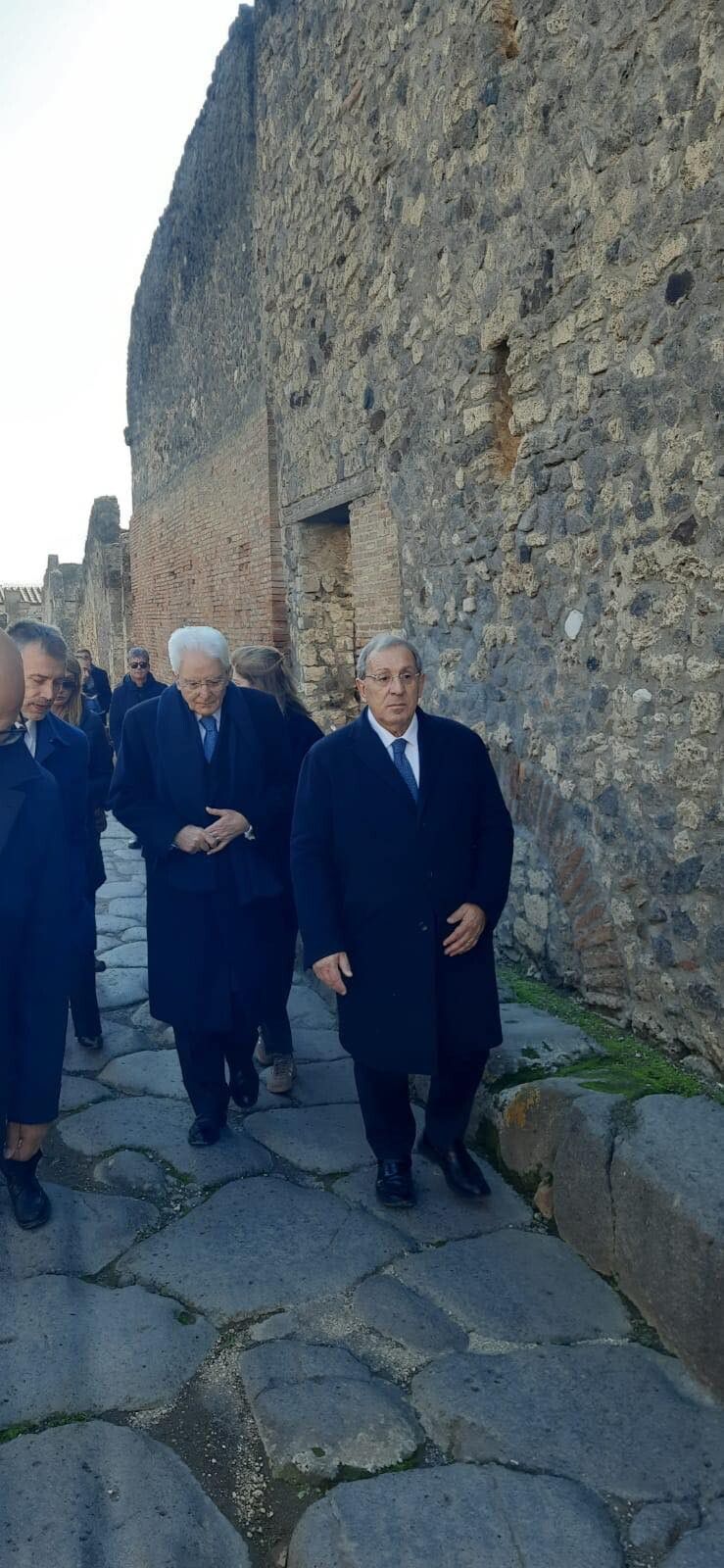 Visita a sorpresa del presidente della Repubblica, Sergio Mattarella, al Parco archeologico di Pompei nella mattinata di sabato 29 novembre. Molti i turisti emozionati quando, intorno alle ore 10.30, hanno visto il capo dello Stato attraversare le vie della Pompei antica accompagnato dal direttore generale del Parco archeologico Gabriel Zuchtriegel. Applausi a ogni angolo sono stati tributati a Mattarella dai visitatori, numerosissimi nella giornata particolarmente gradevole di fine novembre.