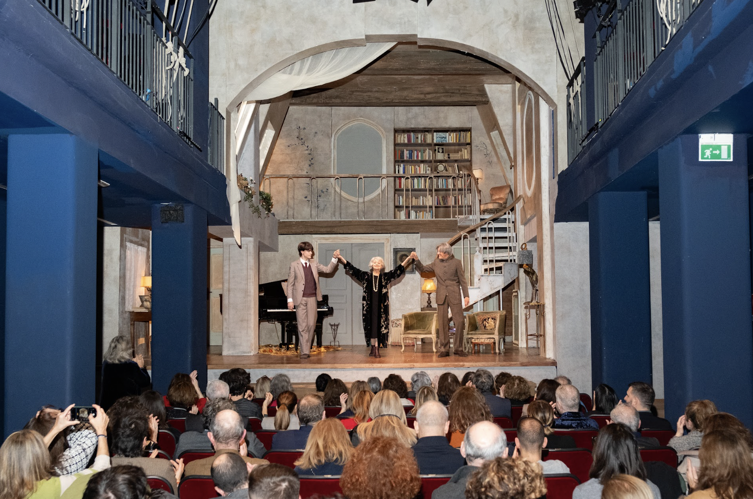 Prosegue la rassegna "Lezioni d'amore" al Teatro Franco Parenti di Milano con "Sinfonia di un incontro", uno spettacolo di Andrée Ruth Shammah, testo di Andrée Ruth Shammah e Federica Di Rosa. "… pensando a Harold e Maude e a Madame Pylinska e il segreto di Chopin" con Milena Vukotic, Federico De Giacomo e Andrea Soffiantini. Vukotic, icona di rara grazia e intelligenza, è Madame A., un’ex pianista che incontra il Giovane Svogliato (De Giacomo). Tra loro nasce qualcosa che sfugge alle definizioni: non è solo una lezione di musica, è un incontro generazionale, un passaggio di testimone, una lenta e potente educazione sentimentale. Un terzo sguardo – il narratore, Andrea Soffiantini – guida lo spettatore in questa danza fatta di note, silenzi e memorie. La serata ha avuto come partner culturale il settimanale "Grazia", diretto da Silvia Grilli, e Cristalfarm. Dopo lo spettacolo gli ospiti si sono spostati per la cena nello splendido gazebo dei Bagni Miateriosi. Menù milanese fatto dallo chef Cerveni accompagnato da i vini della tenuta Masciarelli.