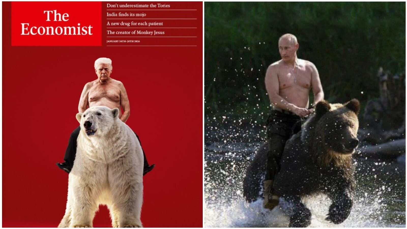 Donald Trump a torso nudo a cavallo di un enorme orso polare su uno sfondo rosso fuoco. Questa è l'immagine della copertina del nuovo numero dell'Economist, che con il suo consueto piglio ironico sembra bastonare il presidente americano e le sue smodate ambizioni espansionistiche in Groenlandia. Richiamando simili atteggiamenti e fotografie (quella celebre del 2009 a cavallo di un orso era un fake, nell'originale c'era un cavallo) del presidente russo Vladimir Putin.