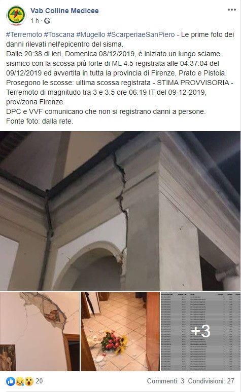 Firenze, terremoto nel Mugello: le prime foto dalla Rete