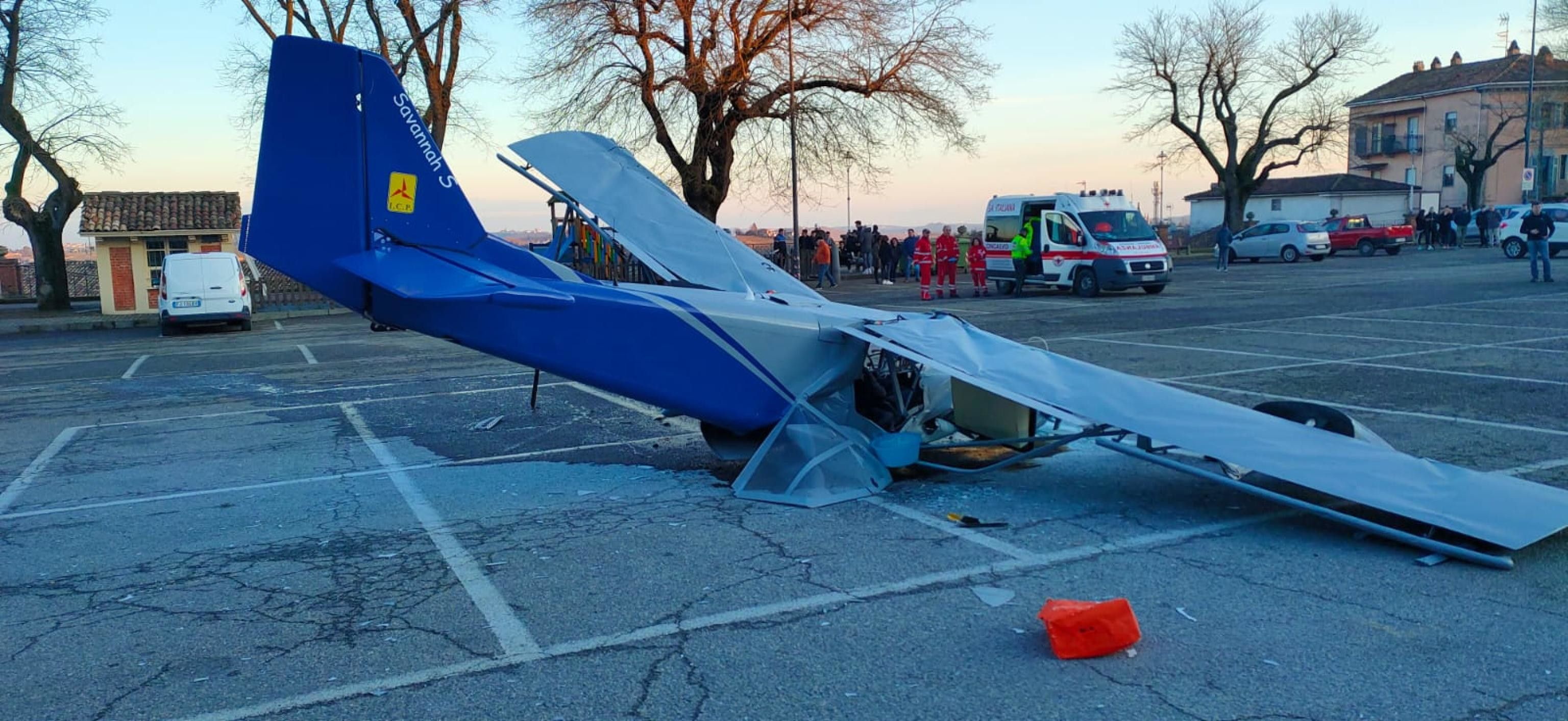 Monferrato, ultraleggero si schianta in piazza: morto il pilota