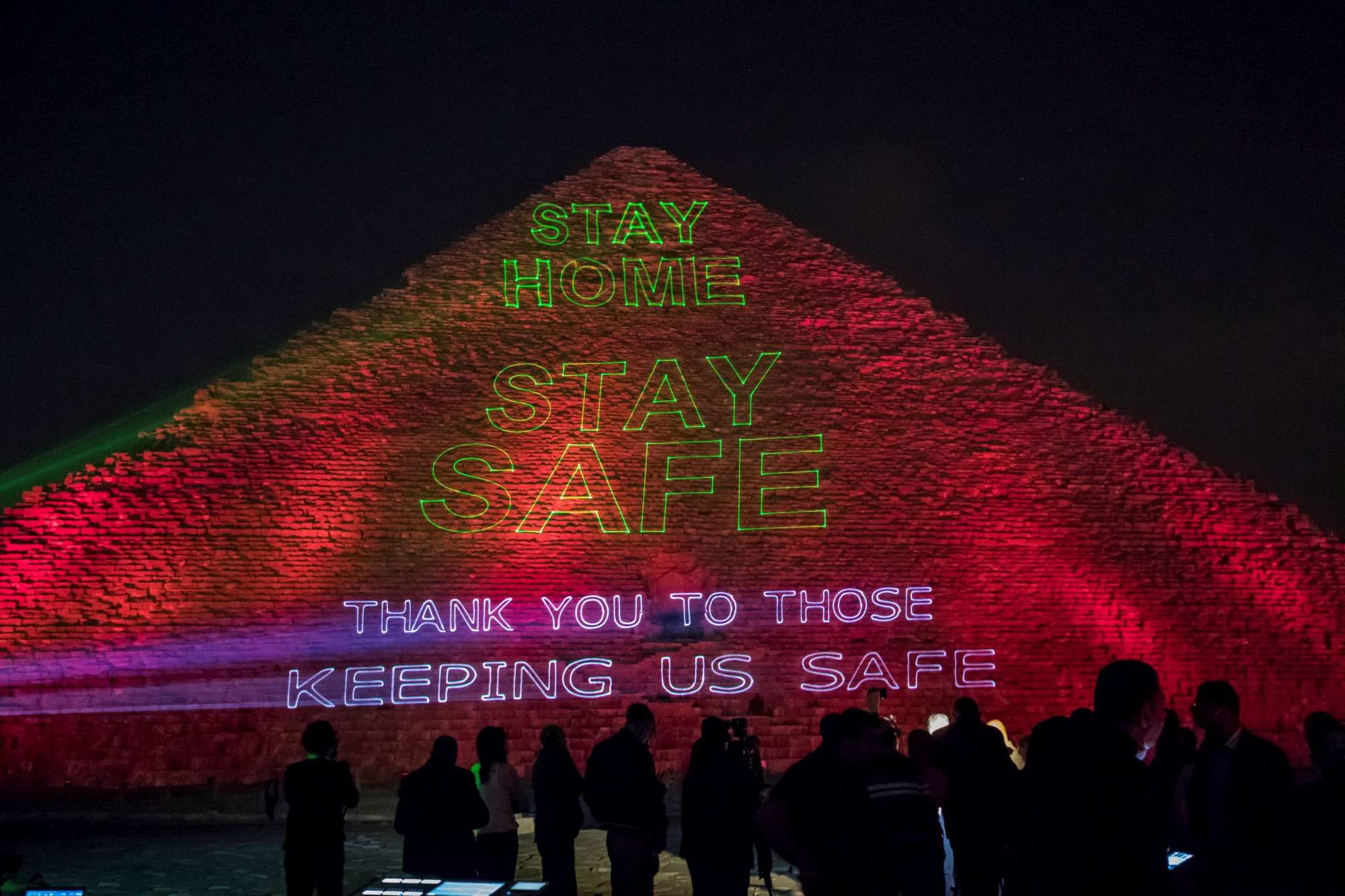 Coronavirus, il messaggio luminoso sulle piramidi egizie: "State a casa"