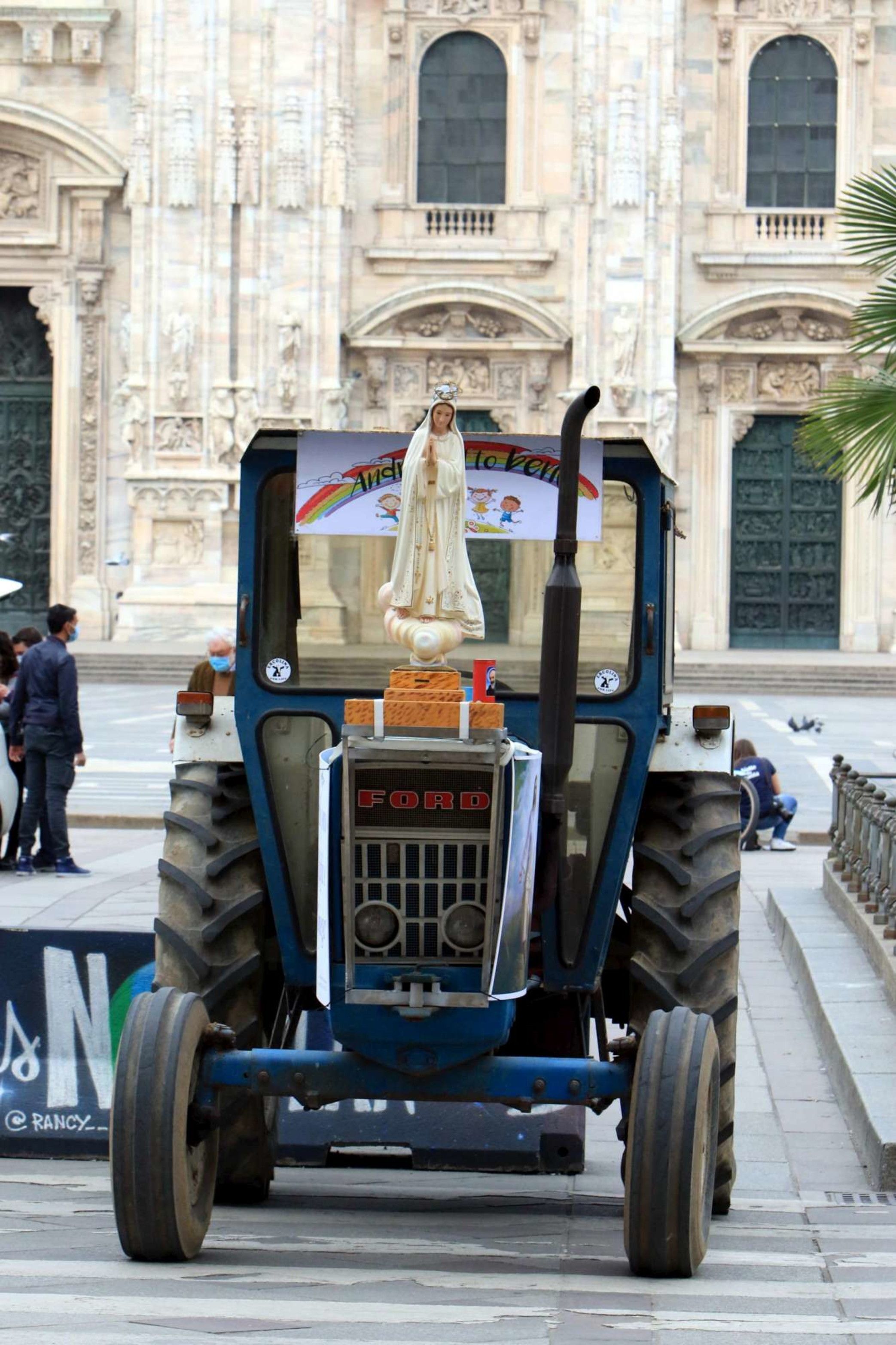 Coronavirus, col trattore da Pavia a Milano per pregare in piazza Duomo