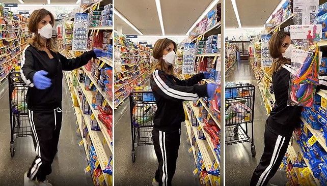 Elisabetta Canalis fa scorta di cibo e per la spesa toglie gli abiti sexy
