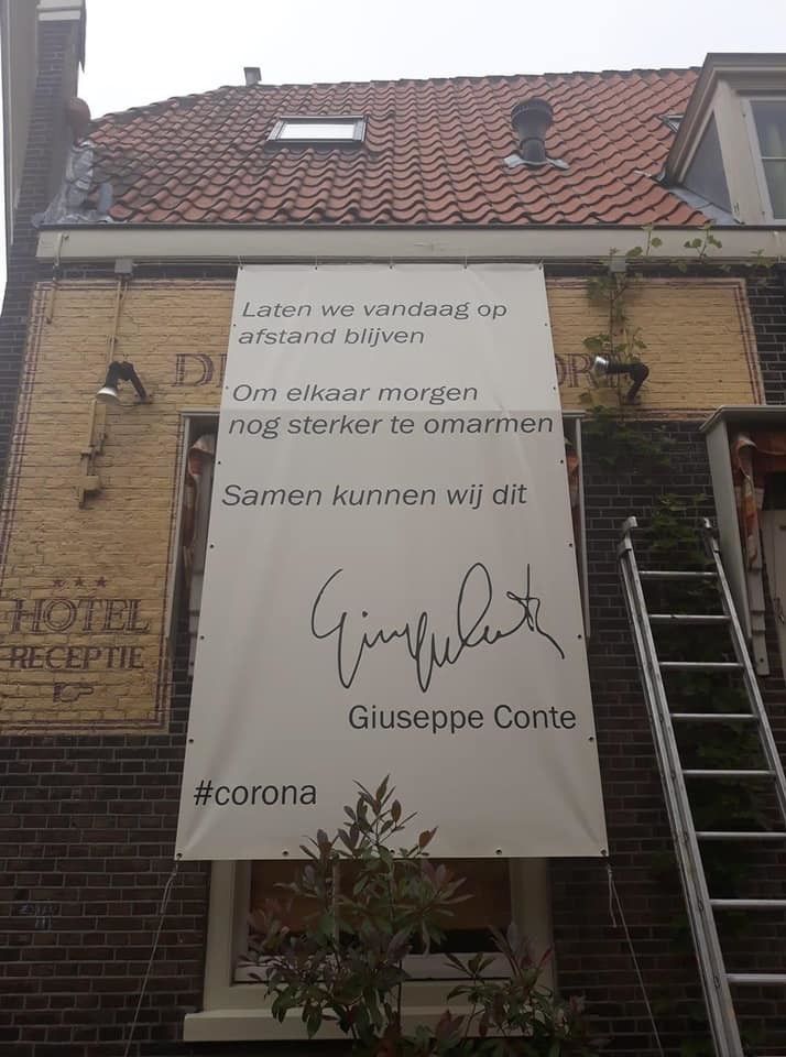 Olanda, il messaggio di Conte su un muro a Delft: torneremo ad abbracciarci