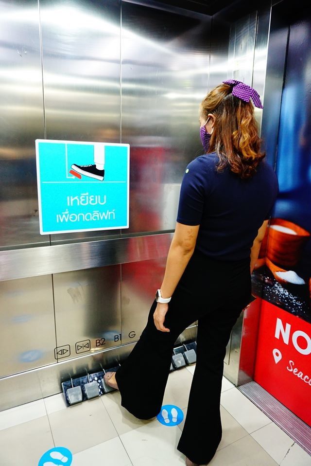 Thailandia, in ascensore pedali al posto dei pulsanti: l'idea di un centro commerciale per limitare i contagi