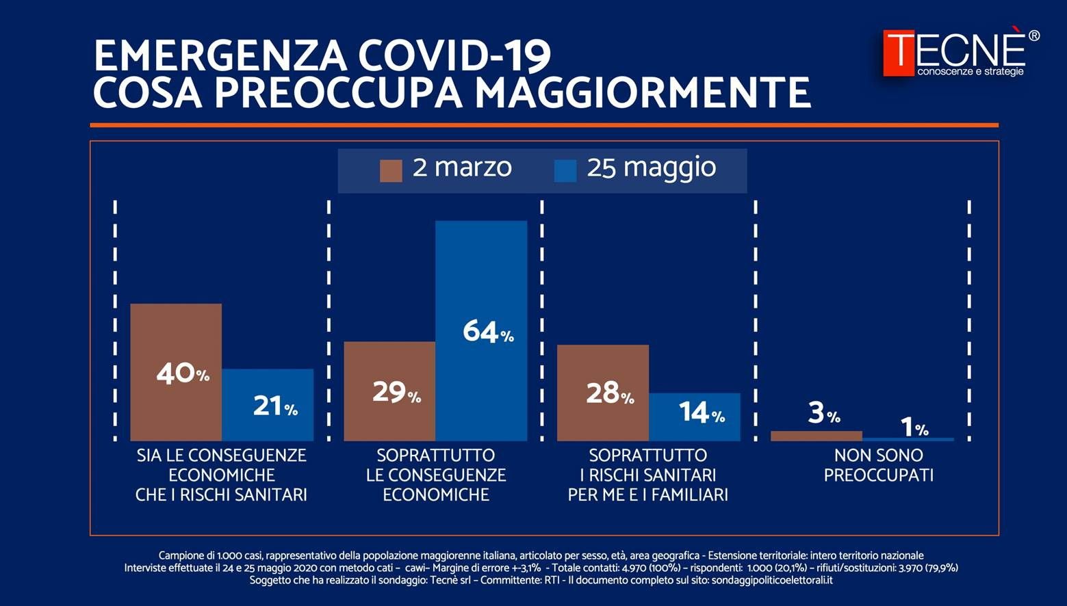 Coronavirus, sondaggio Tecnè: oggi preoccupa più l'aspetto economico di quello sanitario