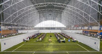 Oslo, campo di calcio trasformato in classe per gli esami di maturità
