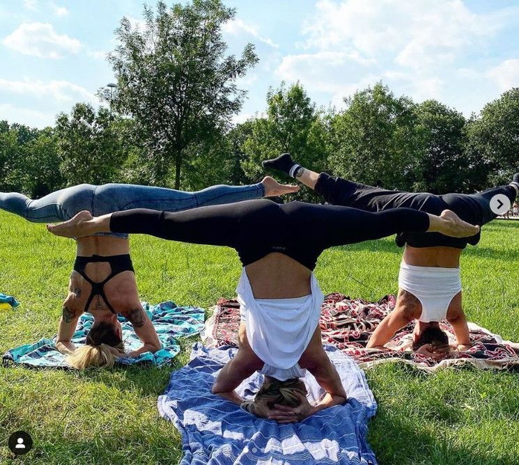 Melissa Satta e Maddalena Corvaglia, le ex veline fanno yoga al parco