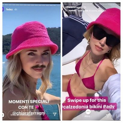 Chiara Ferragni, bikini e baffi per il primo weekend al mare