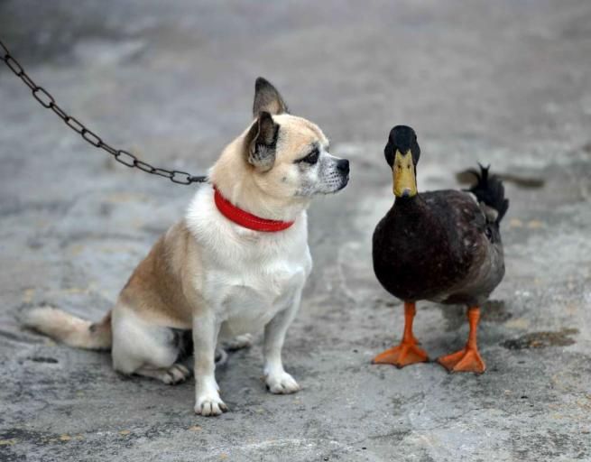 Cina, colpo di fulmine tra un'anatra e un cane a spasso sulla riva del lago