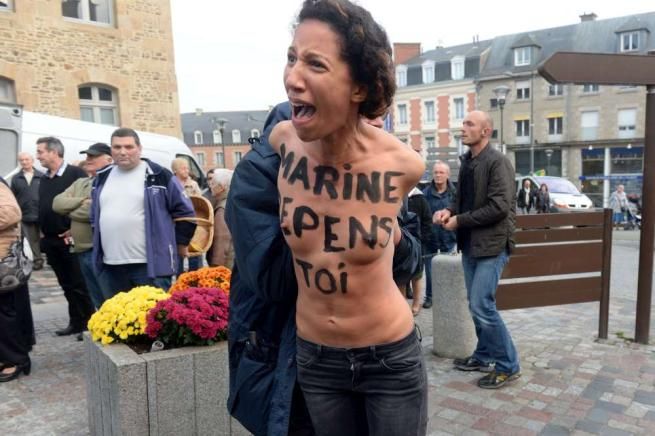 Francia, Marine Le Pen contestata dalle Femen a seno nudo