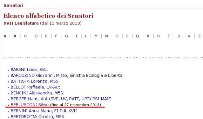 Berlusconi decaduto, il sito di Palazzo Madama aggiorna la lista e la scheda
