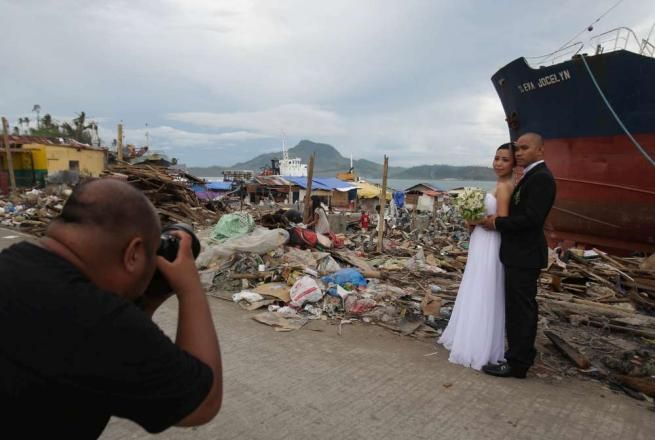 Filippine, a un mese dal tifone una coppiadi sposi diventa il simbolo della rinascita