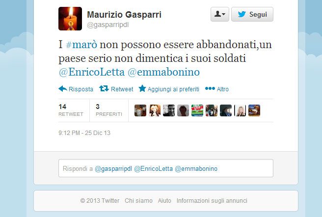 Marò, tempesta di messaggi su Twitter