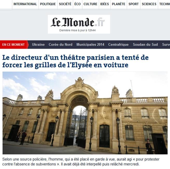 Parigi, direttore italiano di teatro in auto contro l'Eliseo