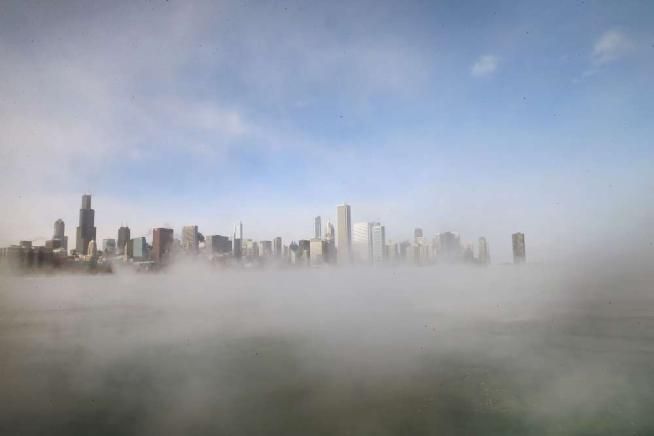 Chicago, tra la nebbia e il ghiaccio lo skyline è uno spettacolo magico