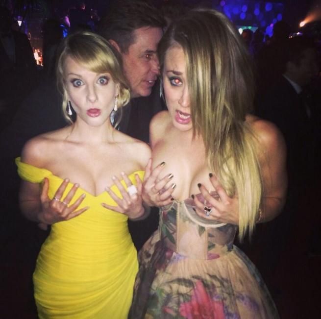 Melissa Rauch e Kaley Cuoco, le star di "Big Bang Theory" si strizzano i "golden globe"