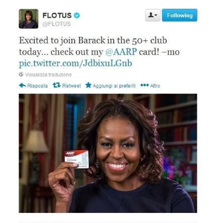 Michelle Obama su Twitter: "Felice di essere nel club dei 50enni con mio marito Barack"