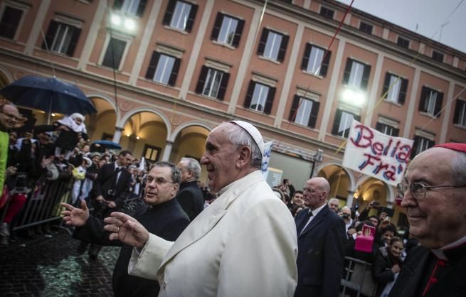 "Bella Frà", lo striscione in romanesco per il Papa che visita una parrocchia