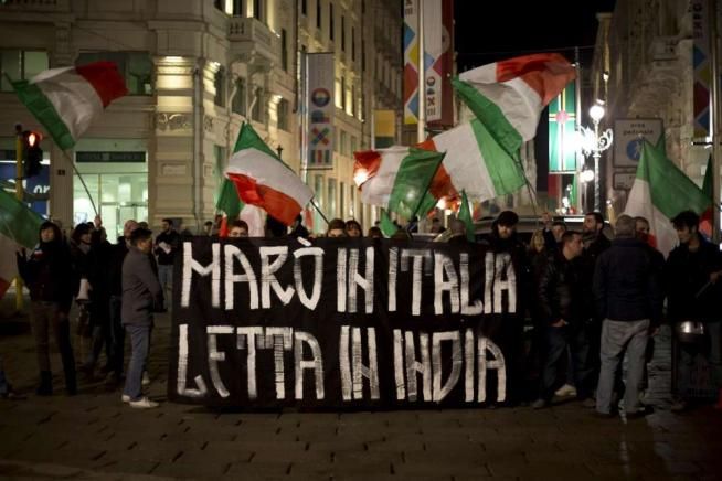 Corteo pro-marò per il centro di Milano "Liberateli", protesta contro festa indiana
