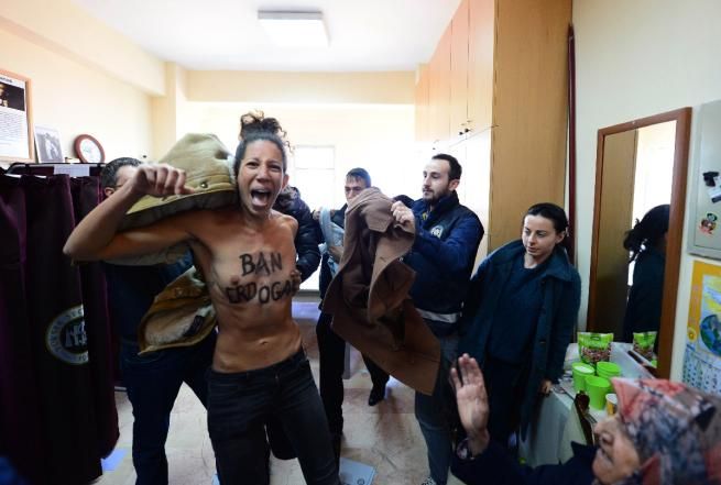 Amministrative in Turchia, le Femen protestano al seggio elettorale