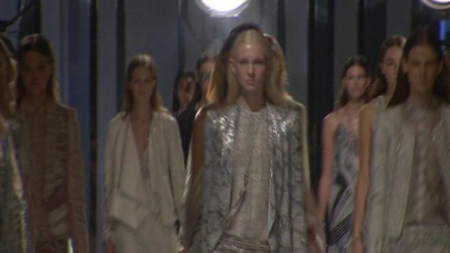 La sfilata di Roberto Cavalli collezione Primavera/Estate 2014 Jo Squillo intervista Enzo Iacchetti e Paolo Ruffini