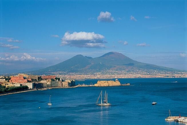 © ufficio-stampa|“Viaggio in Campania. Sulle orme del Grand Tour”, panorama del golfo di Napoli con il Vesuvio e Castel dell'Ovo