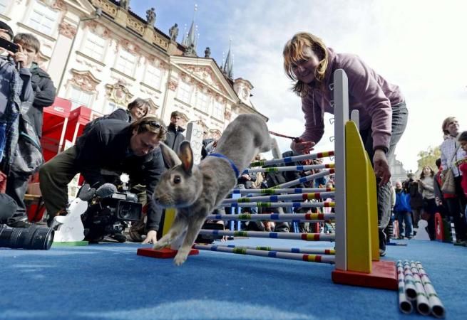 Praga, la corsa a ostacoli dei conigli pasquali