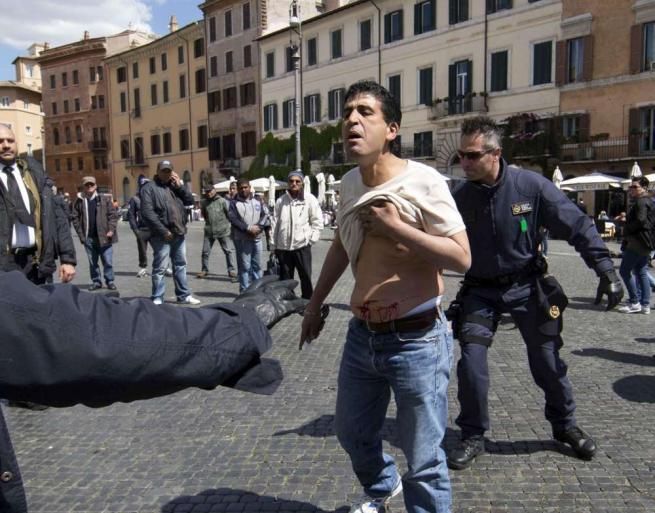 Piazza Navona, protesta dei pittori abusivi: alcuni si feriscono con un coltello